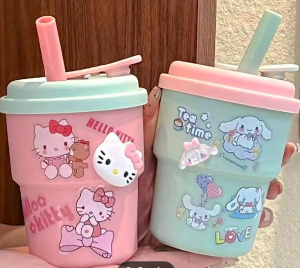 Cute DIY Sticker Large Tumbler with Straw