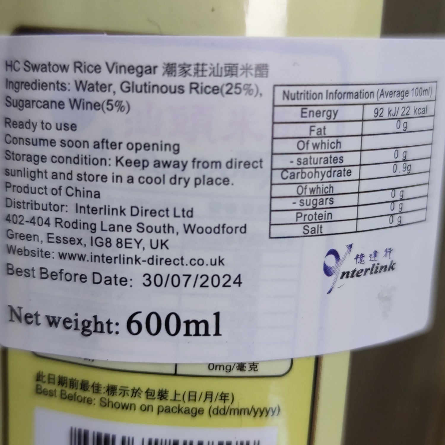 潮家莊汕頭米醋 600ml